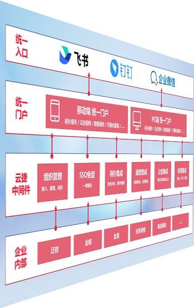对协作平台提供支持服务,,,支持企业应用与协作平台对接,,,包含组织同步、、消息集成、、、待办集成等。。支持目前主流的协作平台:钉钉、、、、企微和飞书。。